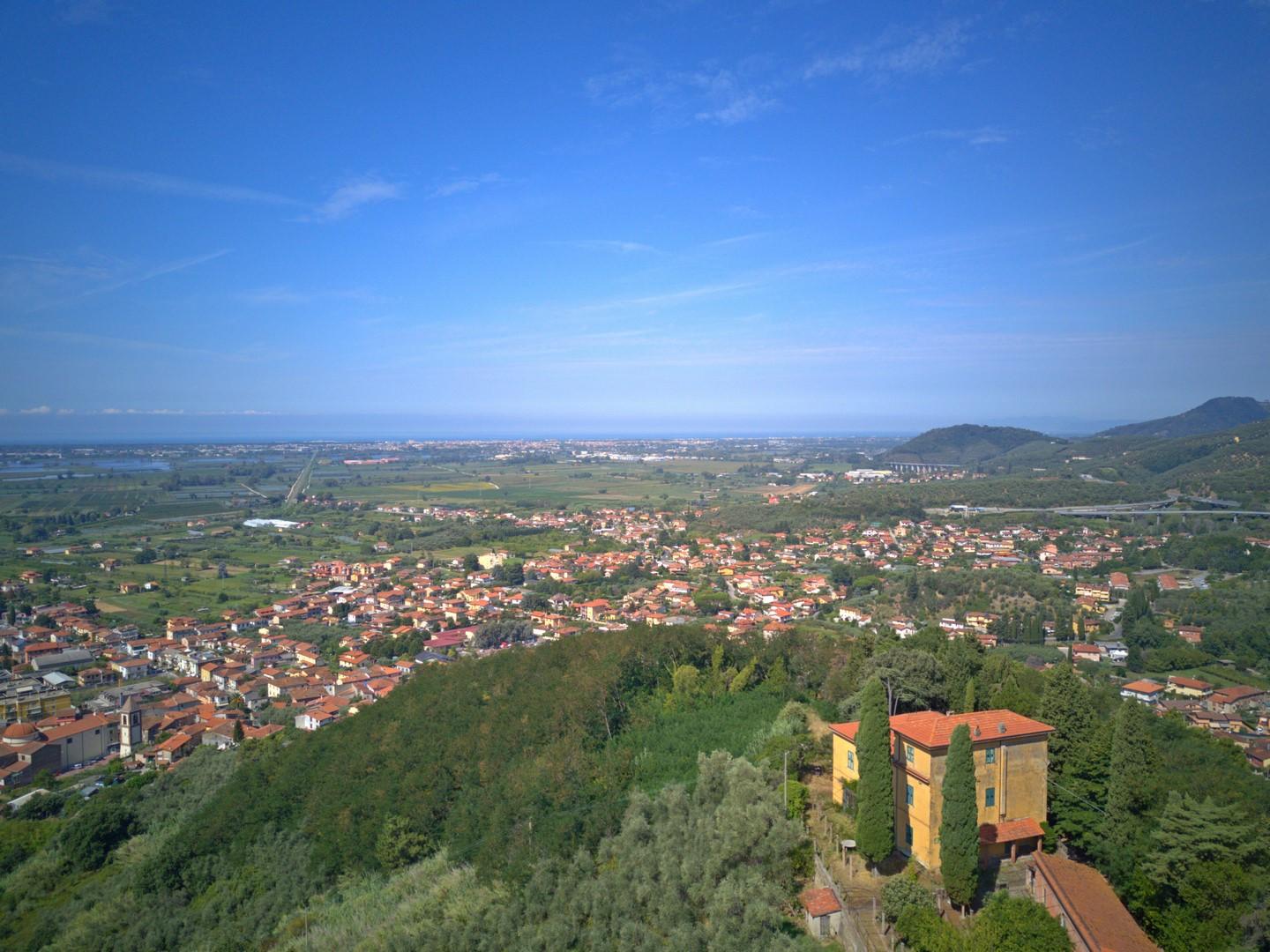 It has an absolutely fantastic view - of the sea and Lake Massaciuccoli and the hills. In front of the villa is a large raised natural terrace, the pool ( 8 x 3.5m was placed to the side of the villa. The whole property with lots of parking space runs down in front of the villa. The property is protected from any noise from the nearby motorway by specially made panels.