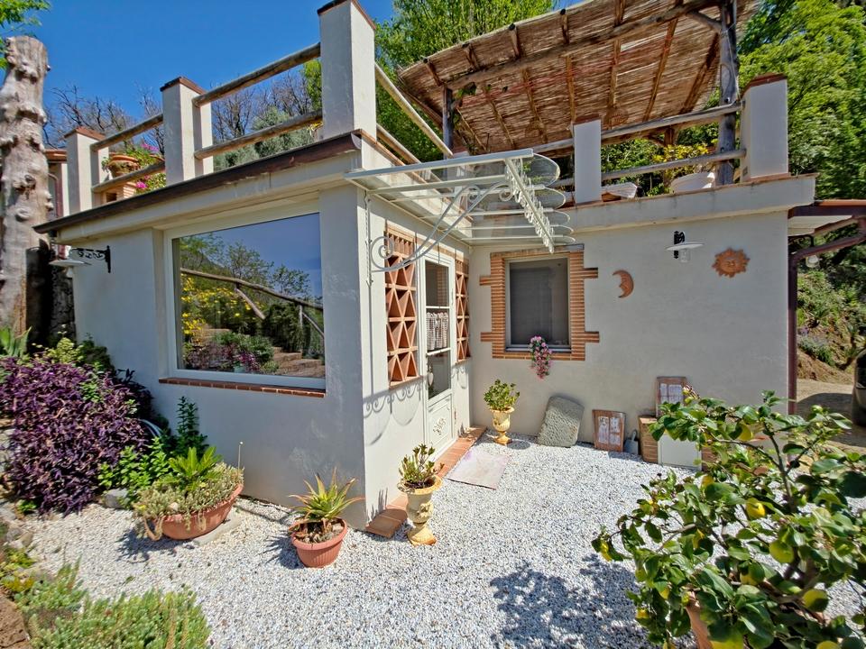 Second property (originally a garage): upstairs, a very large covered panoramic terrace; downstairs, a fully equipped summer kitchen, also with a panoramic window, next to which is a large room – currently used for storage with a water connection – which could be converted into a bathroom and thus a further bedroom.